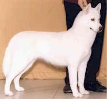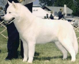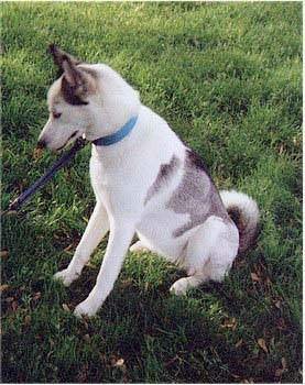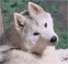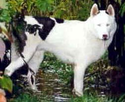 "White" (recessive trait in Siberian Huskies, dog is genetically black, grey, red, etc., but white 'covers' it up - more of a coat pattern, than a true color) |