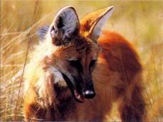 Separately from the other wolf kinds in North America this wolf developed itself like it is nowadays. She is approximately 1m high, 1.2m long and weighs rarely more then 25 kilo's. By the long legs it seems heavier then it is in reality. In nature they live in dry woods, grasfields and swampy regions with a lot of high growing on it. Because of its long legs it is able to look over the long grass, which makes it easier to spy on pray, also to hide away in it. The toes of the wolf can be easily spread which is easy to walk over swampy territory. This wolf is a meat-eater like all dogs but also fruit makes part of half it diet. His favorite food is wild guinea pig. They eat rabbits, frogs, birds, fish... He has sharp teeth to cut meat and flat molders to squeeze fruits. They hunt primarily by dawn and at night. The catch pray with a high speed and high kick. They sometimes even dig pray out of their wholes.